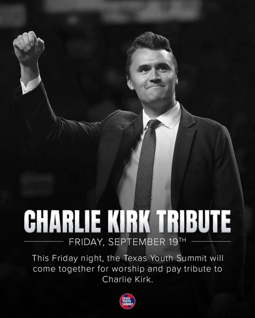 To honor the life and legacy of Charlie Kirk, the schedule for The Texas Youth Summit Friday night has been altered. Now, there will be a time of praise and worship to focus on the Lord. Then there will be tributes from Charlie’s friends Allie Beth Stuckey, Alex Clark, Ted Cruz, and others.